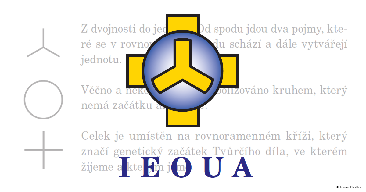 Symbol rovnoramenného kříže není pouze křesťanský, ale je věčným vyjádřením genese Tvůrčího díla. Je ve všech dobách, a tak byl i v křesťanské, která jej pak převedla na kříž s hmotným ramenem dole delším, což je pak kříž Ježíšův, kříž utrpení, který značí nejbolestnější vývojovou dobu. Na vývojové cestě znamená, že člověk musí z hmotných pojmů ubírat a symbolicky zkracovat hmotné rameno až do rovnováhy rovnoramenného kříže. I zde šlo výhledově o rovnováhu, který pojem však byl minulou dostředivou dobou v lidském pojetí značně zamlžen.
