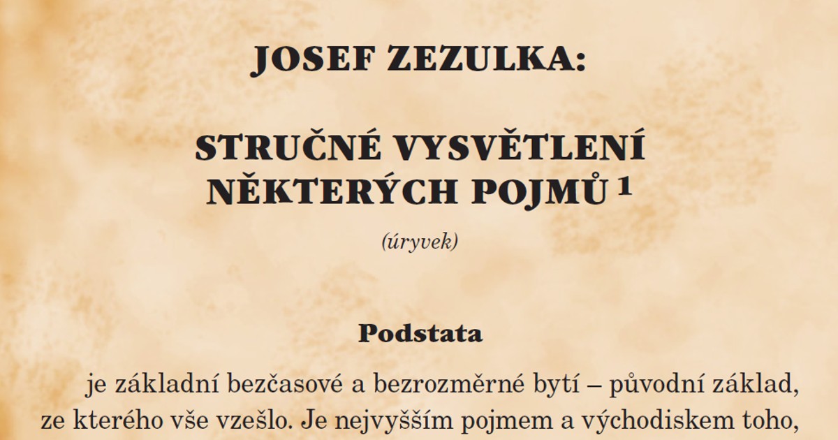 které je v základě tímtéž jako Podstata, ale je to pouze její omezená část. Ta se od Podstaty oddělila a vytvořila to, co svými smysly chápeme, – vidíme, hmatáme, slyšíme, chutnáme, čicháme. Tvůrčí dílo vzniklo dělením oddělené části Podstaty. Z ní povstala hmota, duch i vitální síly čili duše. Hmota, duch i vitalita vykrystalisovaly do čtyř základních prvků. Tomuto charakteristickému dění a dělení říkám