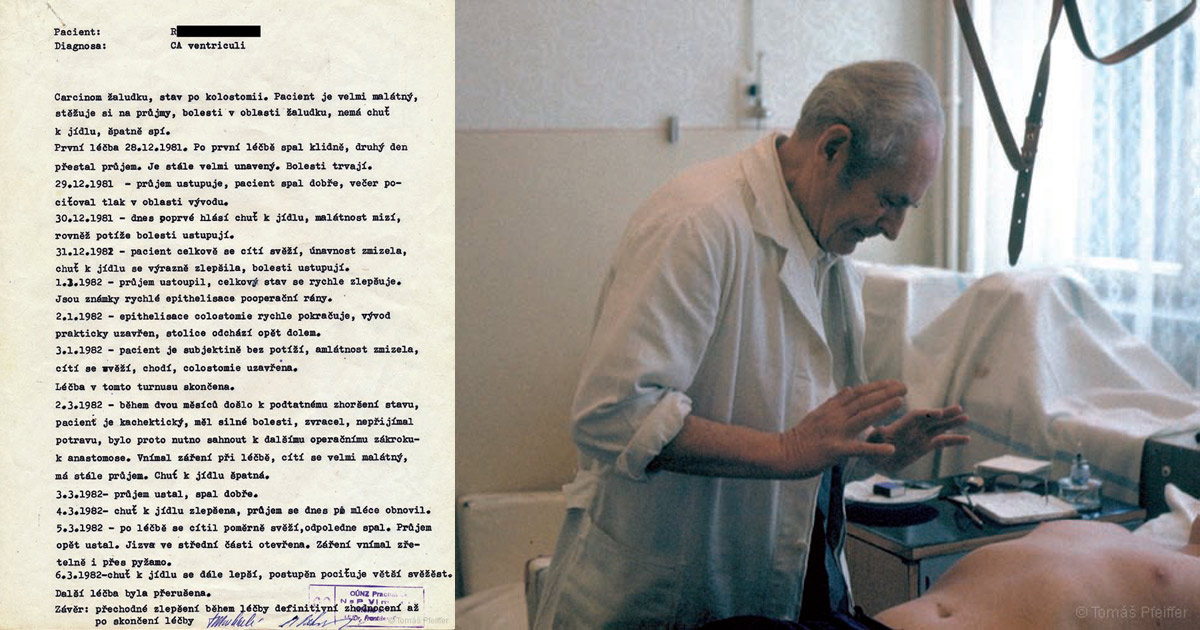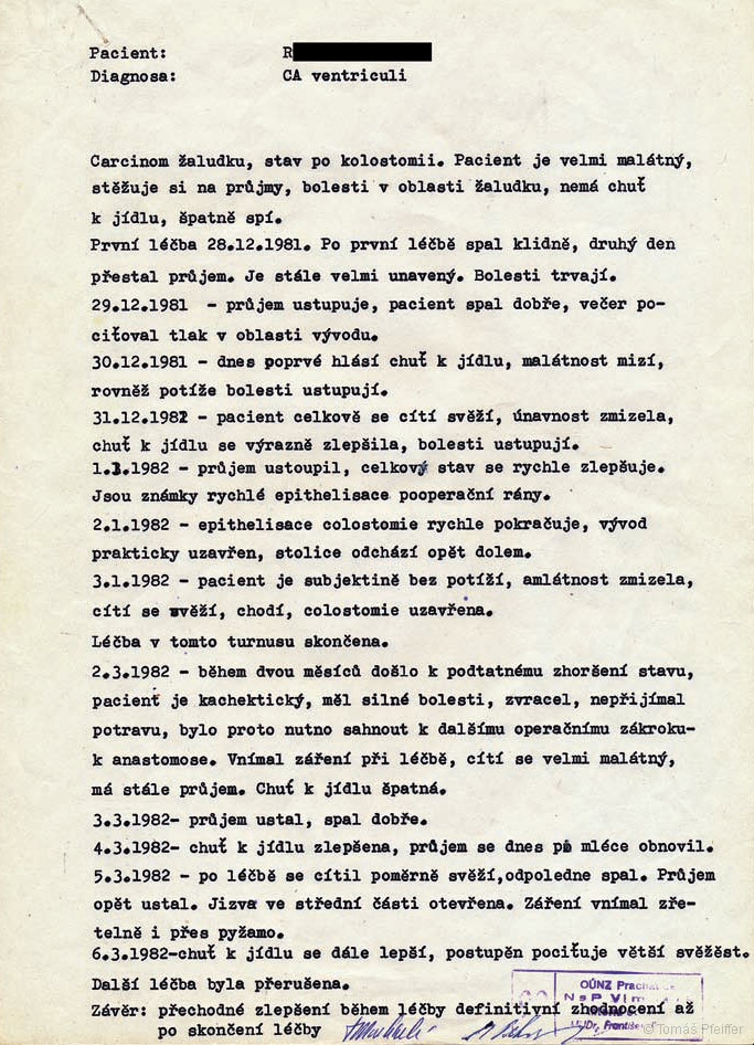 Podle něj tento pacient umíral na nádor žaludku. Byl mu proveden vývod tlustého střeva, aby stolice mohla odcházet z těla. V té době byl již velmi malátný.